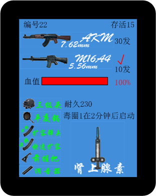 優(yōu)勢四:槍上自帶液晶大屏幕,所有信息一目了然 ,銘恒吃雞裝備采用大尺寸液晶顯示屏顯示槍支彈數(shù),血量,護具盔甲,毒圈子,游戲進度(剩余人數(shù)一目了然;反應速度快,不用看手機
