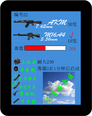 撿裝備的動作是真實的,因為資源和信息太多,一個圖片化的彩屏顯示是必須的。它讓玩家明白自已資源的一個狀況,比如血值量、槍型和子彈數(shù)。雖然你刷的是實物卡,不是必須看這些信息,但信息以直觀圖形顯示出來,可以增加游戲的品質(zhì)。
